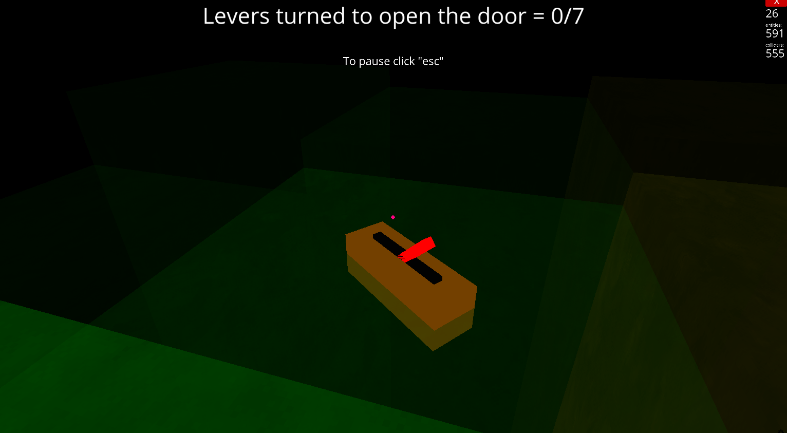 This is a pretty simple horror game turn 7 levers escape but the map itself makes it harder ignore the complexes (complex = Entity) so the now the generated terrain makes it difficult to go in 1 direction and makes you even get lost without changing any thing also there are 2 complexes: Roams and Flashlight you will learn about them in the game only so go fast download it! A link to see gameplay video: